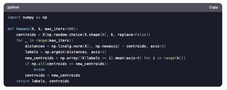 25. Write code to perform k-means clustering from scratch.
